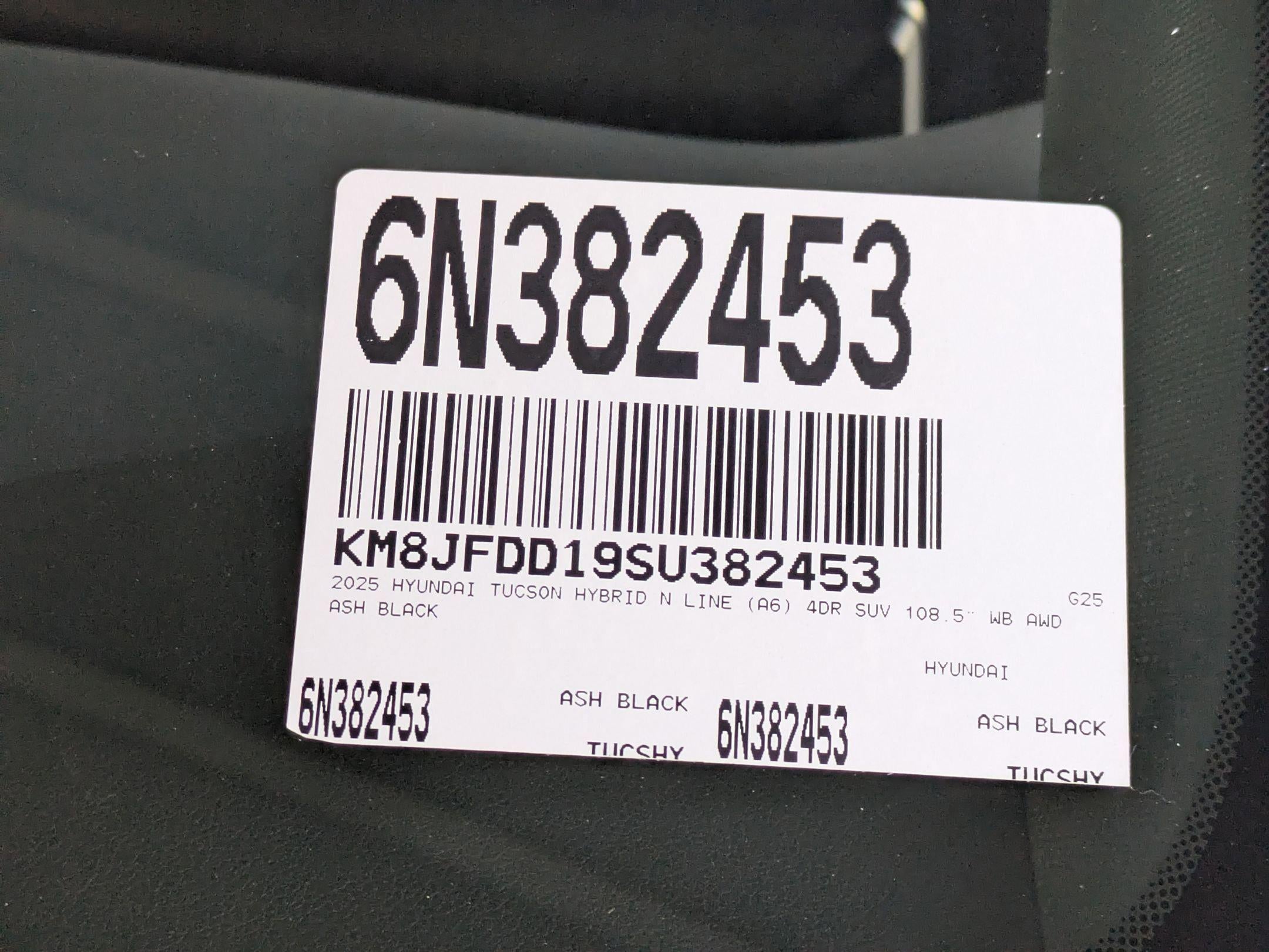 2025 Hyundai Tucson Hybrid N Line KBB Fair Market Range High: $37,800 KBB Fair Market Range Low: $35,70037/36 City/Highway MPG 4D Sport Utility Priced below KBB Fair Purchase Price! Ash Black 2025 Hyundai Tucson Hybrid N Line AWD 6-Speed Automatic 1.6L I4 DGI Hybrid Turbocharged DOHC 16V LEV3-SULEV30 1.6L I4 DGI Hybrid Turbocharged DOHC 16V LEV3-SULEV30.37/36 City/Highway MPG Price includes: $3250 - Hyundai HMF Dealer Choice : $3250 discount and 5.39% APR for 24 months. $44.05 per $1000 financed. Available to well qualified buyers who finance through Hyundai Motor Finance. H704. Exp. 02/02/2026
