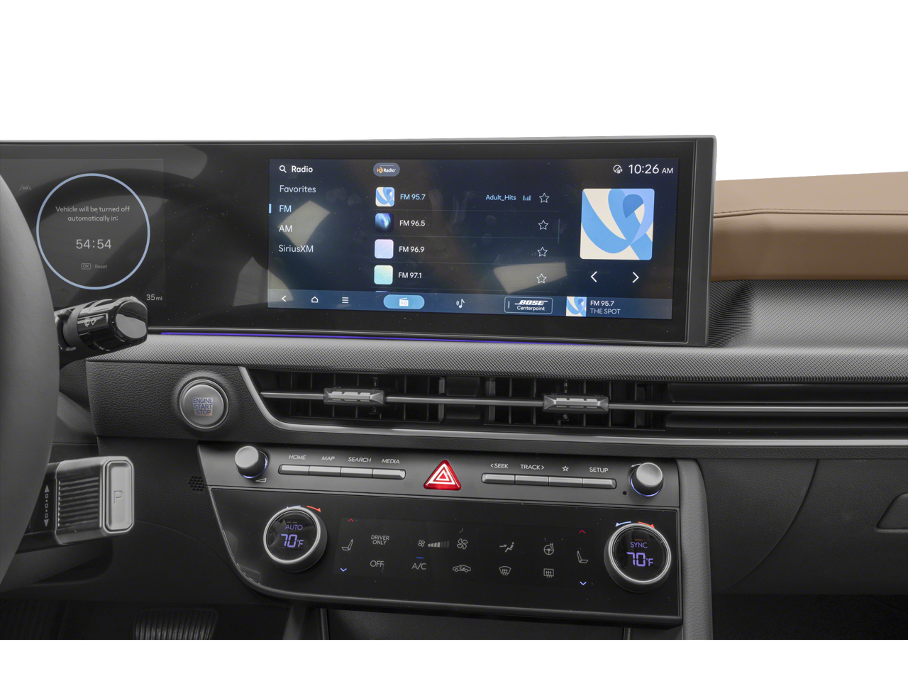 - Radio: AM/FM/HD/MP3/SiriusXM -inc: 12.3" high-resolution touchscreen, Bose premium audio w/12 speakers (1 center channel, 2 dash, 2 front tweeters, 4 door mounted, 2 rear mounted speakers plus 1 rear mounted subwoofer), dynamic voice recognition w/Wi-Fi hotspot, smartphone integration, Bluetooth®, Over-The-Air updates, USB connectivity, Blue Link+ connected car, Android Auto/Apple CarPlay capability (wireless and wired), HERE HD traffic and diversity antenna (navigation and premium audio)