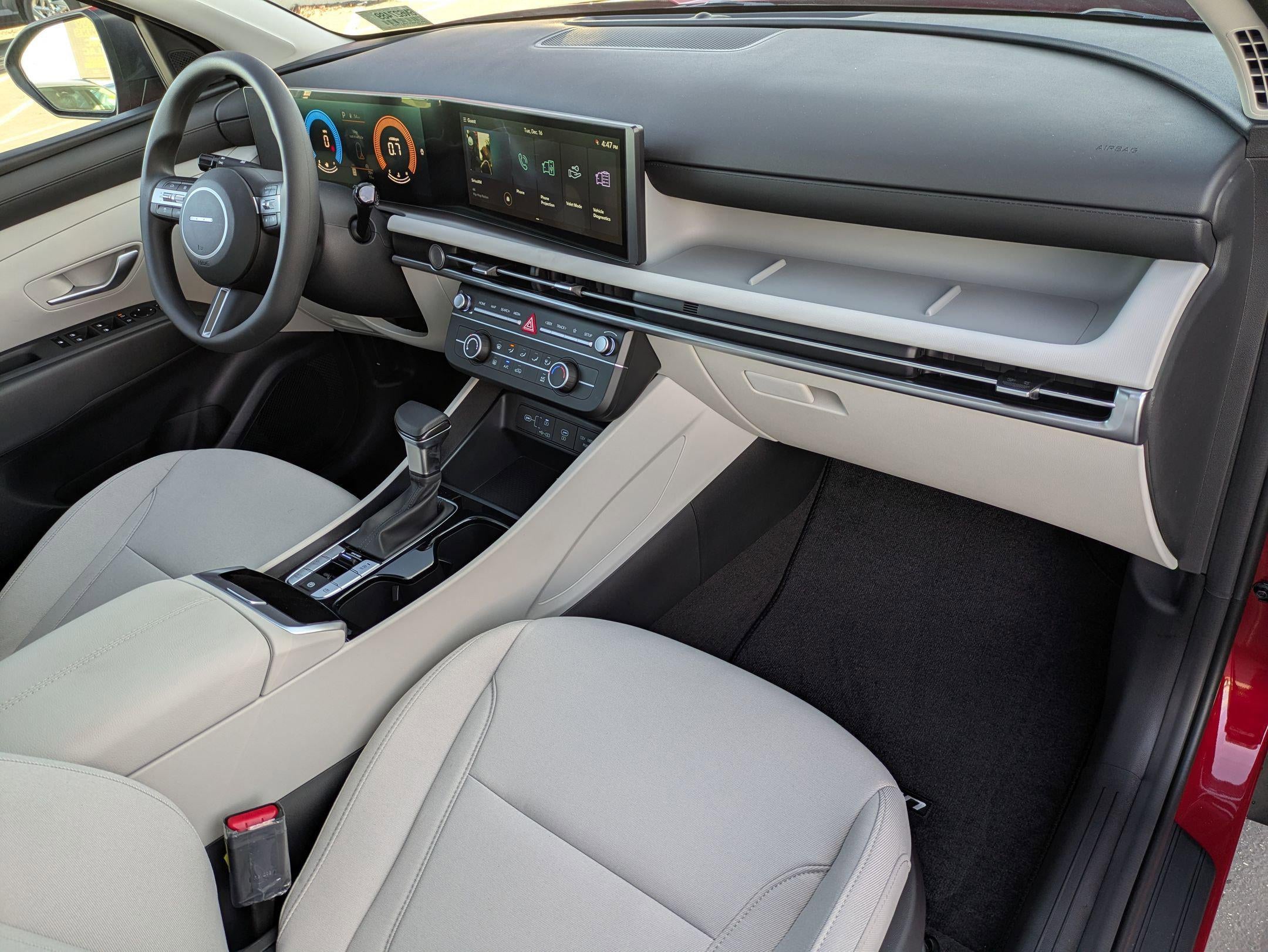 - Radio: AM/FM/HD Audio System -inc: 12.3" color touchscreen display, 6 speakers, SiriusXM satellite radio system (3-month trial subscription), wireless Apple CarPlay and Android Auto integration, controller OTA update capability, Blue Link connected car system and USB connectivity