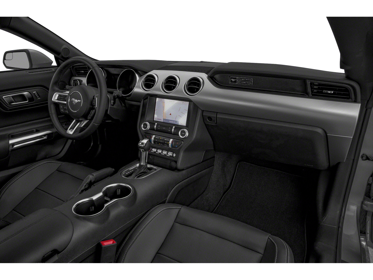 3.55 Limited Slip Rear Axle, 4-Wheel Disc Brakes, ABS brakes, Alloy wheels, AM/FM Stereo w/MP3 Player, Ambient Lighting w/MyColor, Auto High-beam Headlights, Auto-dimming Rear-View mirror, Black Accent Package, Black Accent Package w/Shadow Black Paint, Black Decklid Spoiler, Black GT, 5.0 & Pony Badges, Black Mirror Caps, Brake assist, Bumpers: body-color, Compass, Delay-off headlights, Driver door bin, Driver vanity mirror, Dual front impact airbags, Dual front side impact airbags, Dual-Zone Automatic Temperature Control, Electronic Stability Control, Emergency communication system: 911 Assist, Equipment Group 301A, Exterior Parking Camera Rear, Four wheel independent suspension, Front anti-roll bar, Front Bucket Seats, Front Center Armrest, Front fog lights, Front reading lights, Fully automatic headlights, Illuminated Door-Sill Scuff Plates, Illuminated entry, Knee airbag, Low tire pressure warning, Occupant sensing airbag, Outside temperature display, Overhead airbag, Overhead console, Painted Black Roof, Panic alarm, Passenger door bin, Passenger vanity mirror, Power door mirrors, Power driver seat, Power passenger seat, Radio data system, Rain sensing wipers, Rear anti-roll bar, Remote keyless entry, Security system, Selectable Drive Modes w/Toggle Switches, Speed control, Speed-sensing steering, Speed-Sensitive Wipers, Split folding rear seat, Spoiler, Steering wheel mounted audio controls, Tachometer, Telescoping steering wheel, Tilt steering wheel, Traction control, Trip computer, Variably intermittent wipers, Voltmeter, Wheels: 19 x 8.5 Ebony Black-Painted Aluminum.2021 Ford Mustang GT