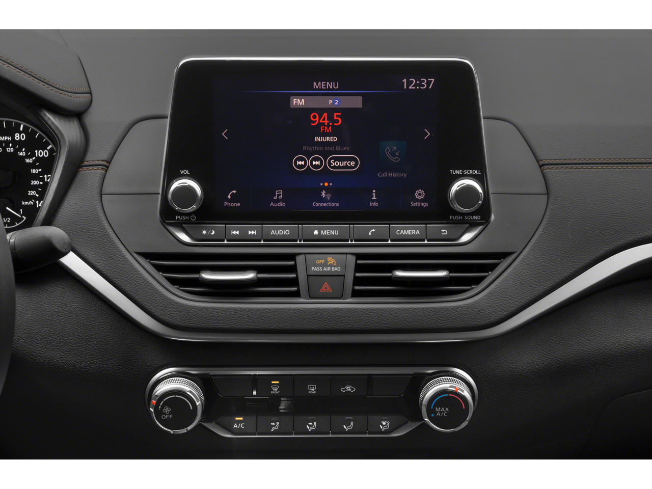 - Radio: AM/FM Audio System -inc: RDS, MP3, aux-in, 6 speakers, NissanConnect featuring Apple CarPlay, Android Auto, 8" color display w/multi-touch control, 1 front illuminated USB port (type-C) for compatible devices, SiriusXM radio w/advanced audio features, Bluetooth® hands-free phone system, streaming audio via Bluetooth®, hands-free text messaging assistant, 2 rear illuminated USB ports (type-A, 1 type-C) for compatible devices, Siri Eyes Free/Google Assistant voice recognition