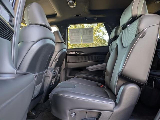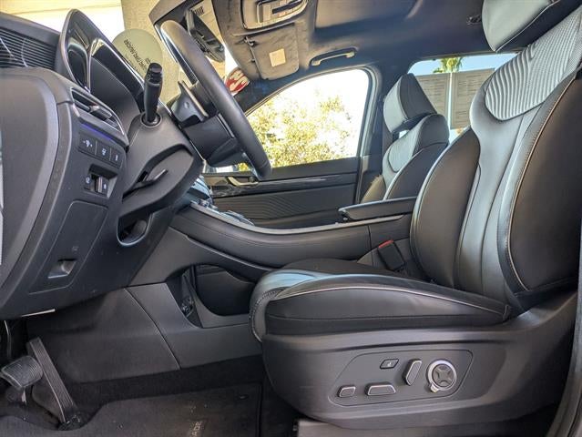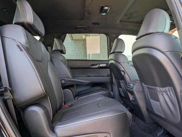 12 Speakers, 3rd row seats: split-bench, 4-Wheel Disc Brakes, ABS brakes, Alloy wheels, AM/FM radio: SiriusXM, Auto High-beam Headlights, Auto-dimming door mirrors, Auto-leveling suspension, Automatic temperature control, Brake assist, Bumper Applique, Bumpers: body-color, Cargo Block, Cargo Net, Cargo Tray, Delay-off headlights, Driver door bin, Driver vanity mirror, Dual front impact airbags, Dual front side impact airbags, Electronic Stability Control, Emergency communication system, Exterior Parking Camera Rear, Four wheel independent suspension, Front anti-roll bar, Front Bucket Seats, Front Center Armrest, Front dual zone A/C, Front reading lights, Fully automatic headlights, Garage door transmitter: HomeLink, Heads-Up Display, Heated & Ventilated Front Bucket Seats, Heated door mirrors, Heated front seats, Heated rear seats, Heated steering wheel, Illuminated entry, Knee airbag, Low tire pressure warning, Memory seat, Navigation System, Occupant sensing airbag, Option Group 01, Outside temperature display, Overhead airbag, Overhead console, Panic alarm, Passenger door bin, Power Liftgate, Power moonroof, Power passenger seat, Power windows, Premium Nappa Leather Seat Trim, Radio data system, Radio: AM/FM/MP3 Premium Audio System, Rain sensing wipers, Rear air conditioning, Rear anti-roll bar, Rear audio controls, Rear side impact airbag, Rear window wiper, Reclining 3rd row seat, Remote keyless entry, Roadside Assistance Kit, Security system, Speed-sensing steering, Split folding rear seat, Spoiler, Steering wheel mounted audio controls, Telescoping steering wheel, Traction control, Turn signal indicator mirrors, Variably intermittent wipers, Ventilated front seats, Ventilated rear seats, Wheels: 20" x 7.5J Calligraphy Exclusive Alloy.2024 Hyundai Palisade CalligraphyCertified.